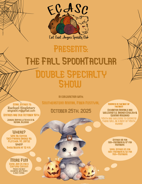 Special Demonstration: Angora Rabbit Judging, Registration and Shearing on Saturday at 1:30 and 3:30 pm. This will be held in the Loading dock, near their booth.